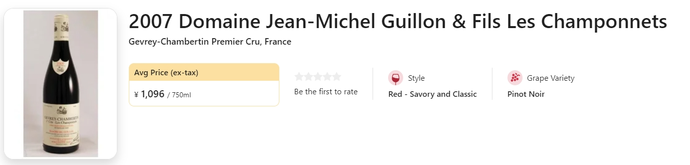 【国均6.8折!《阿歇特指南》盛赞名家,优年“钢裤”平替一级园!】Domaine Jean-Michel Guillon & Fils Les Champonnets, Gevrey-Chambertin Premier Cru 2007