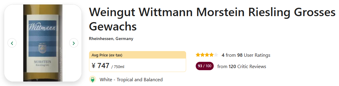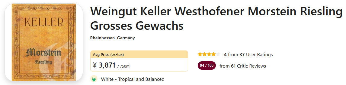 要知道,Keller白石园的Wine-Searcher国际均价已经来到了¥3871,与Keller齐名的Wittmann也要¥747,且价格更是连年上涨!