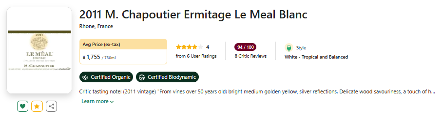 ⭐M.Chapoutier知名的“Le Le Le”三大单一园之一的Le Meal园,难得一见的干白酒款!