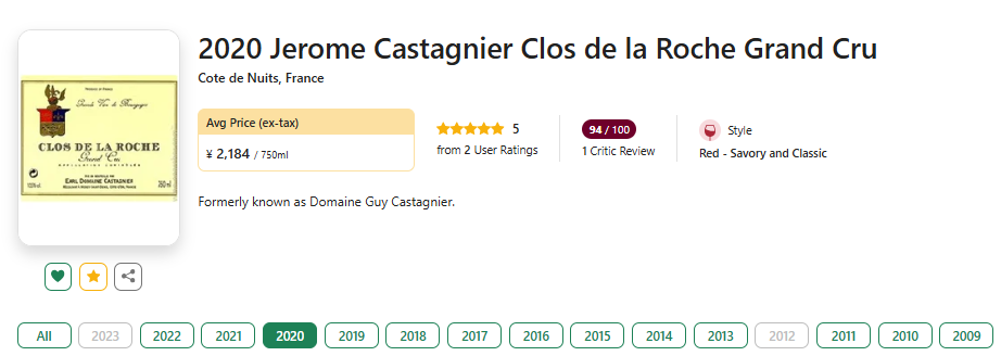 【国均7.6折!勃艮第天才酿酒师,大年“石头园”!】Jerome Castagnier Clos de la Roche Grand Cru 2020