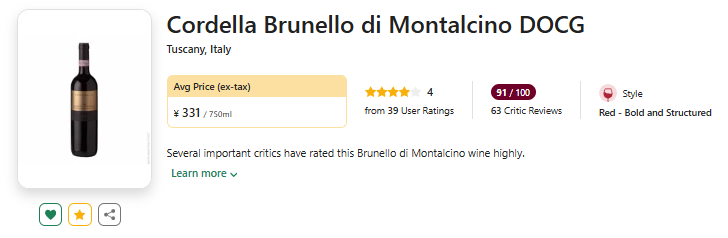 《葡萄酒鉴赏家》,位列20世纪12大葡萄酒的布鲁内洛: