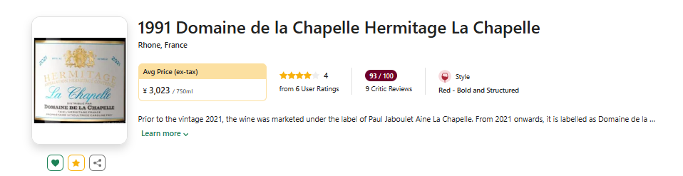 *在2021年份之前,该酒以 Paul Jaboulet Aine La Chapelle的标签在市场上销售,但从2021年起,该酒改以 Domaine de la Chapelle的标签销售。(来源官网)
