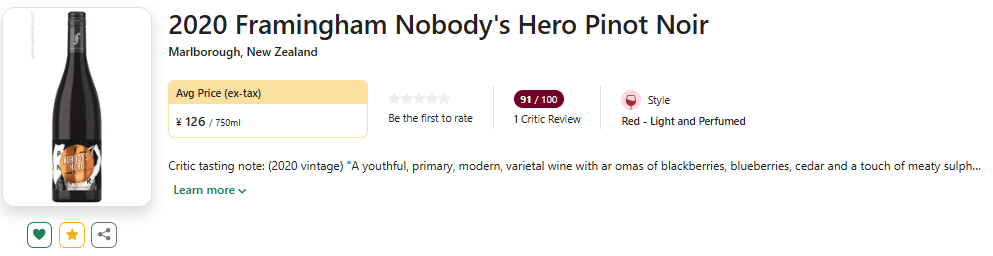 【清仓直降近40! 马尔堡统治者 · 高性价比黑皮诺】Framingham Nobody's Hero Pinot Noir 2020 单支/六支装 酒云直采