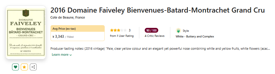 【国均8.9折!勃艮第膜拜豪门,经典BBM特级园!】Domaine Faiveley Bienvenues-Batard-Montrachet Grand Cru 2016
