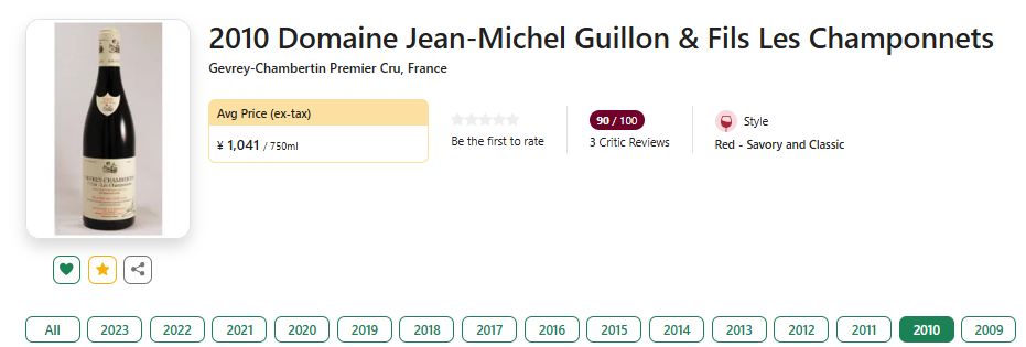 【国均7.7折!《阿歇特指南》盛赞名家,大年“钢裤平替“一级园!】Domaine Jean-Michel Guillon & Fils Les Champonnets, Gevrey-Chambertin Premier Cru 2010