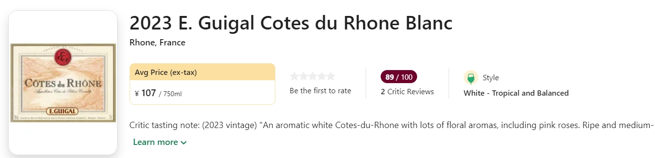 【国均9.2折起!口碑名庄吉佳乐,新年份爆款白!】E.Guigal Cotes-du-Rhone Blanc 2023 套餐自选