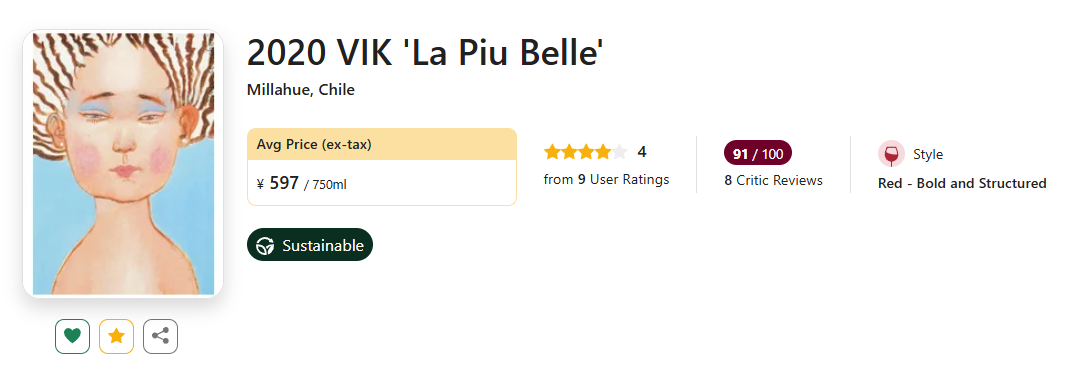 【滴血特卖直降40!国均5.9折!智利新晋膜拜庄,金奖高分“艺术女神”】VIK 'La Piu Belle' 2020