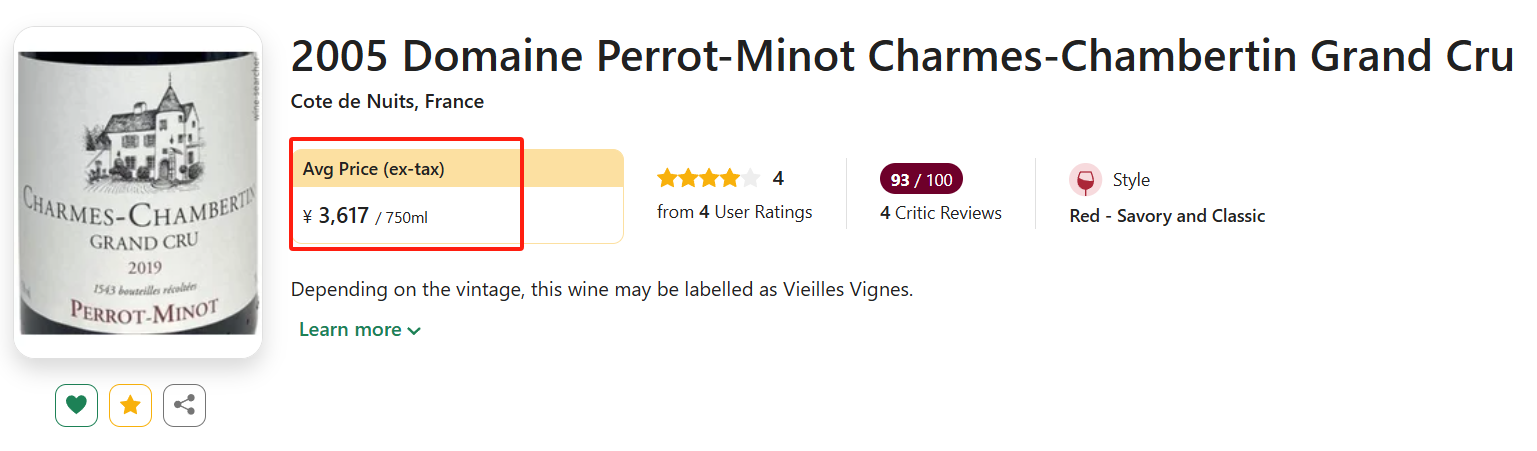 2005伟大老年份(WA 98!)Charmes-Chambertin特级园,WA 94-95高分背书!目前新年份均价已飙至近8000,我们以低均210+的好价上线,老饕们抓紧入手坐等升值!
