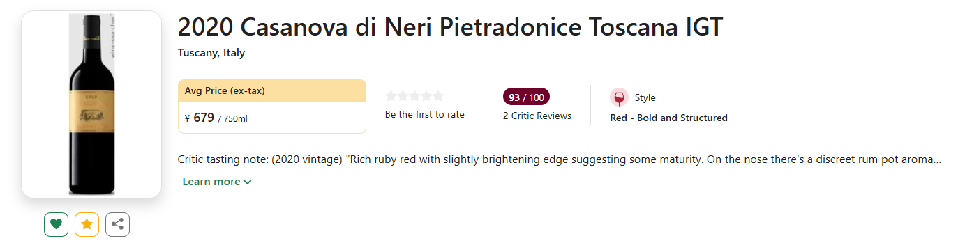 酒庄旗下的酒款曾经多次获得知名酒评家RP以及JS的满分!Casanova di Neri Tenuta Nuova BDM 2001年份曾位列WS百大第一(曾拿下第一名的意大利酒包括Antinori Solaia 1997索拉雅、Ornellaia 1998奥内拉雅,Sassicaia 2015)!