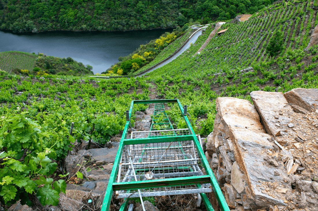 而Ribeira Sacra是西班牙Galicia产区的一个宝藏产区,被称为“神圣河岸”。风土跟德国Mosel非常相似,受大西洋影响形成冷凉气候,海拔450米,地形险峻陡峭,葡萄园分布在临河的山坡上,土壤多为片岩和花岗岩,富含矿石,基本上种植着老藤。