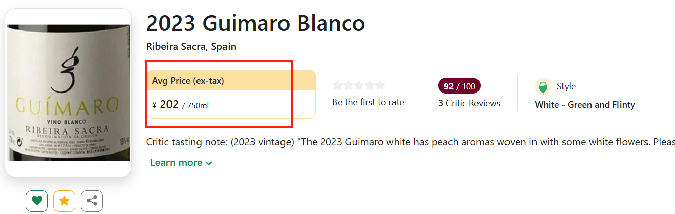 Ribera Sacra产区头牌名庄之一,备受WA等酒评推崇的Guimaro白惊喜回归!