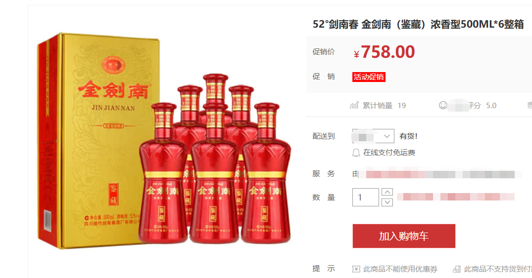 此款酒质同金剑南K6 (K6是剑南春集团的核心战略产品-该系列产品曾多次荣获国内外大奖)
