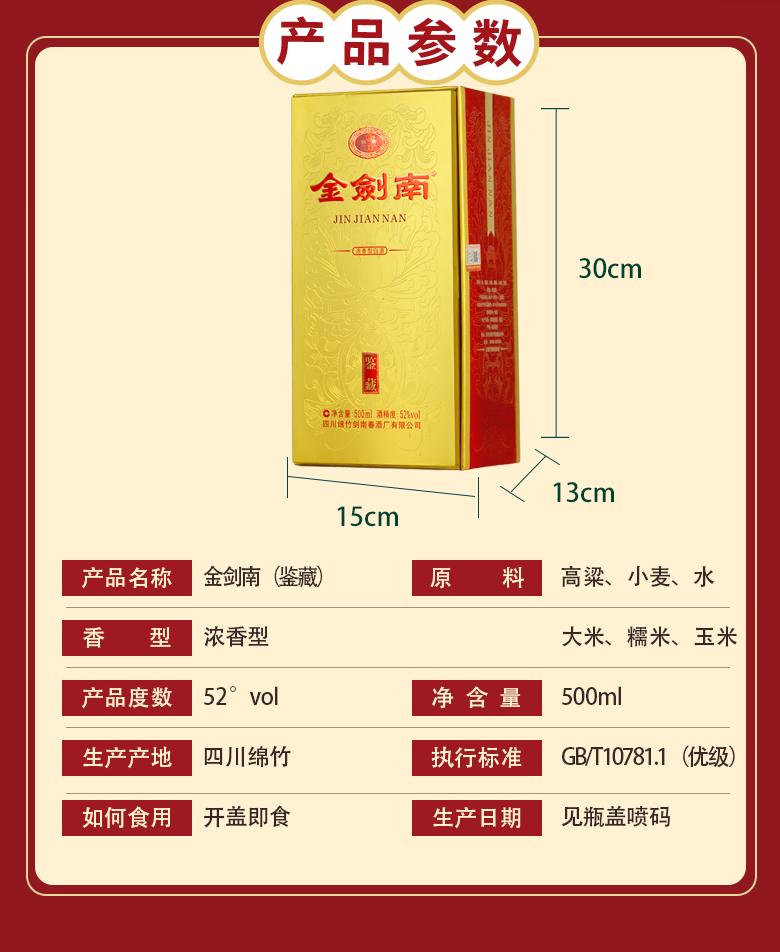【绝佳的口粮之选,超值整箱囤 】金剑南鉴藏 52度浓香型白酒500ml礼盒装 双支/六支原箱