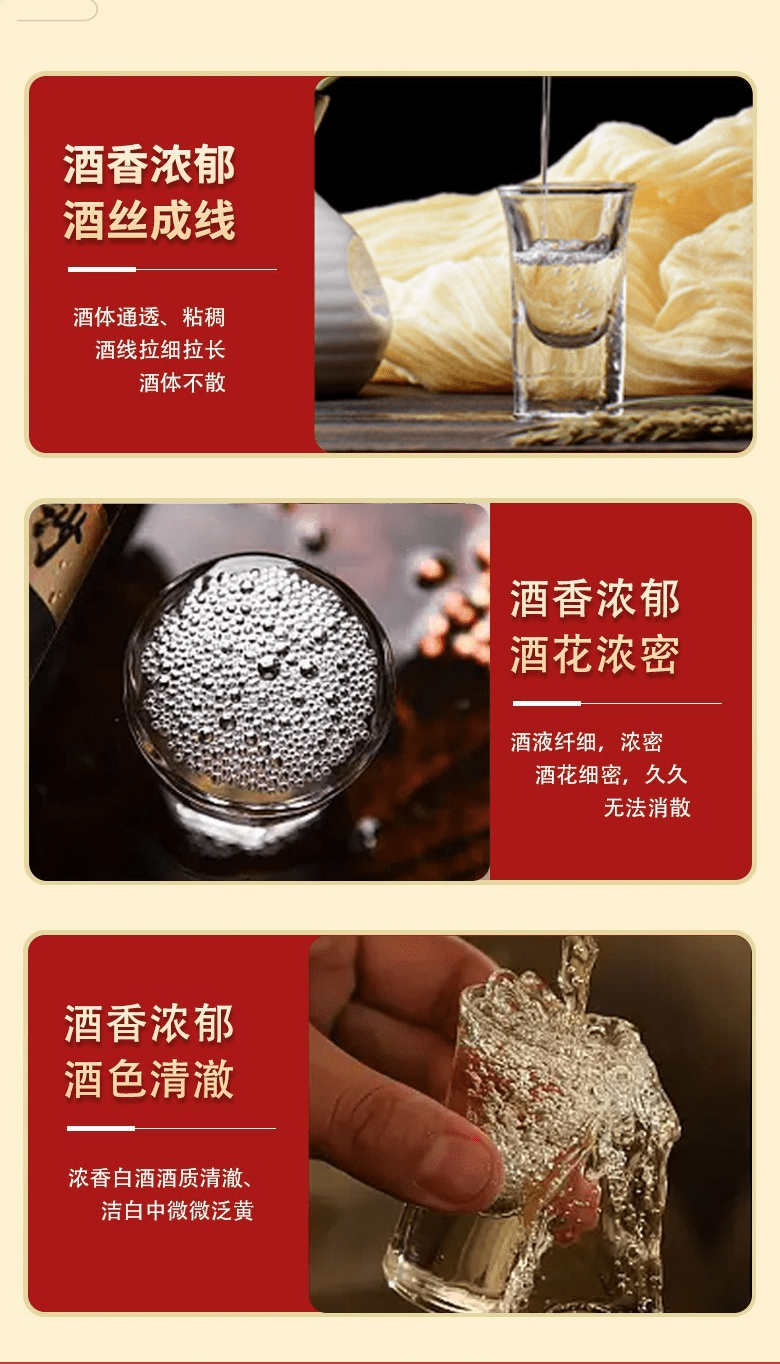 工艺精湛,带来三大“特点”:酒丝成线、酒花浓郁、酒液清澈!