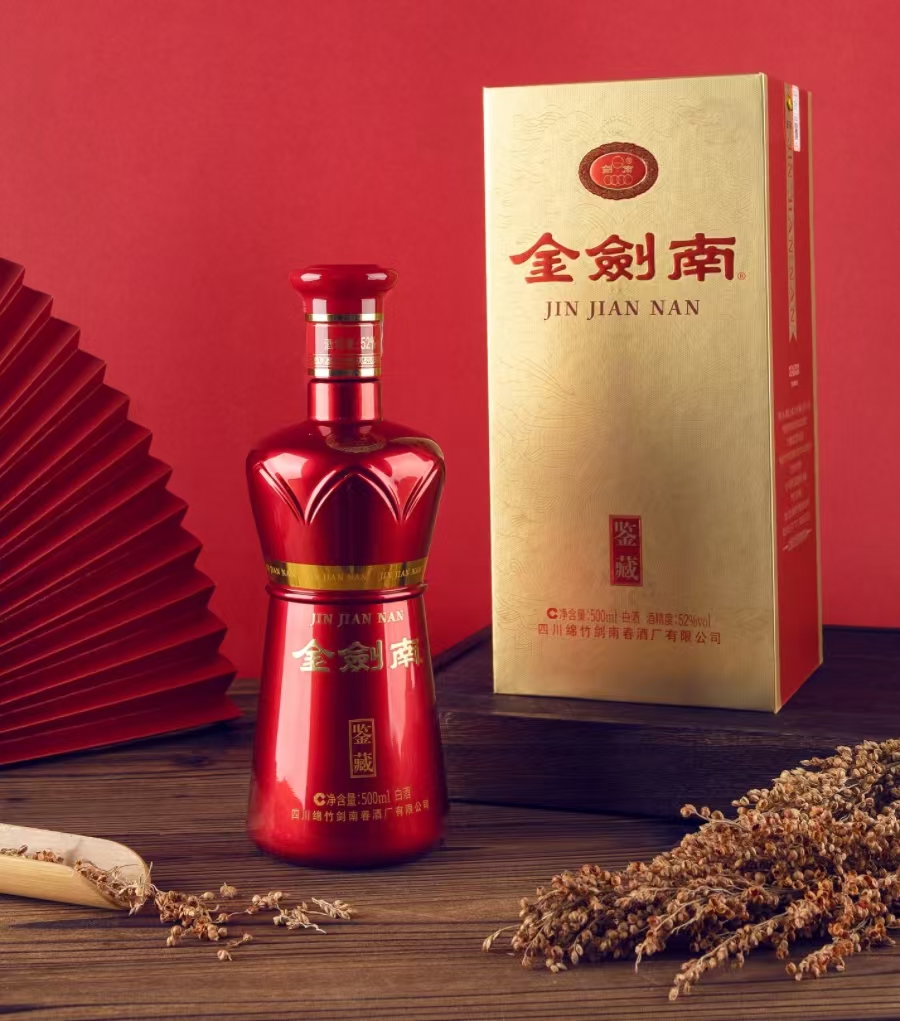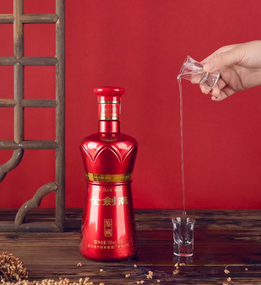 剑南春酒是我国的传统白酒,有着“绵竹三绝”之称,由高粱、小麦、大米、糯米、玉米为主要原料,采用传统技艺精心酿制而成的浓香型白酒。