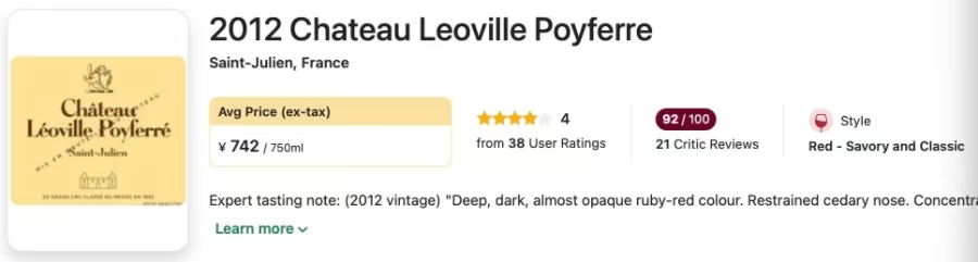 【白菜波尔多,直降89元!超二名庄,高分正牌】Chateau Leoville Poyferre 2012 单支/六支木箱