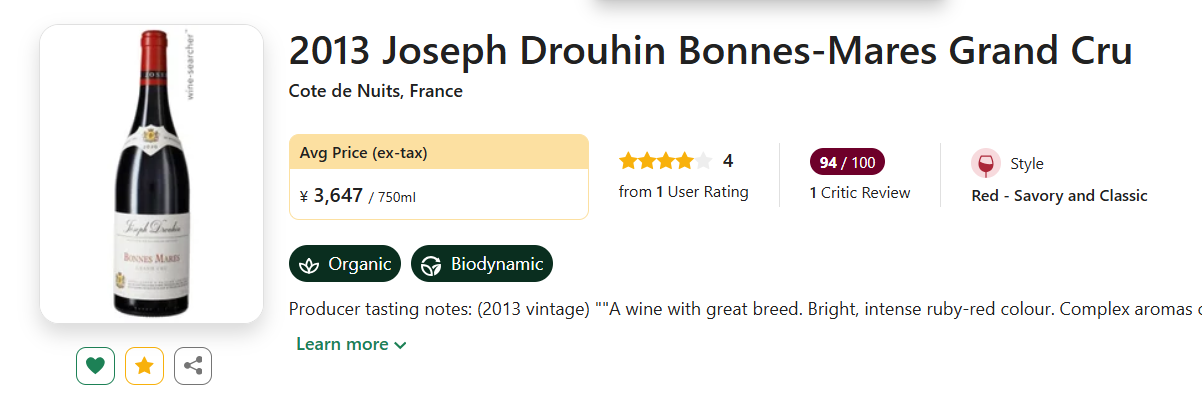 勃艮第大名家Joseph Drouhin,香波村唯二特级园之一的Bonnes-Mares,以低均好价强势上线!