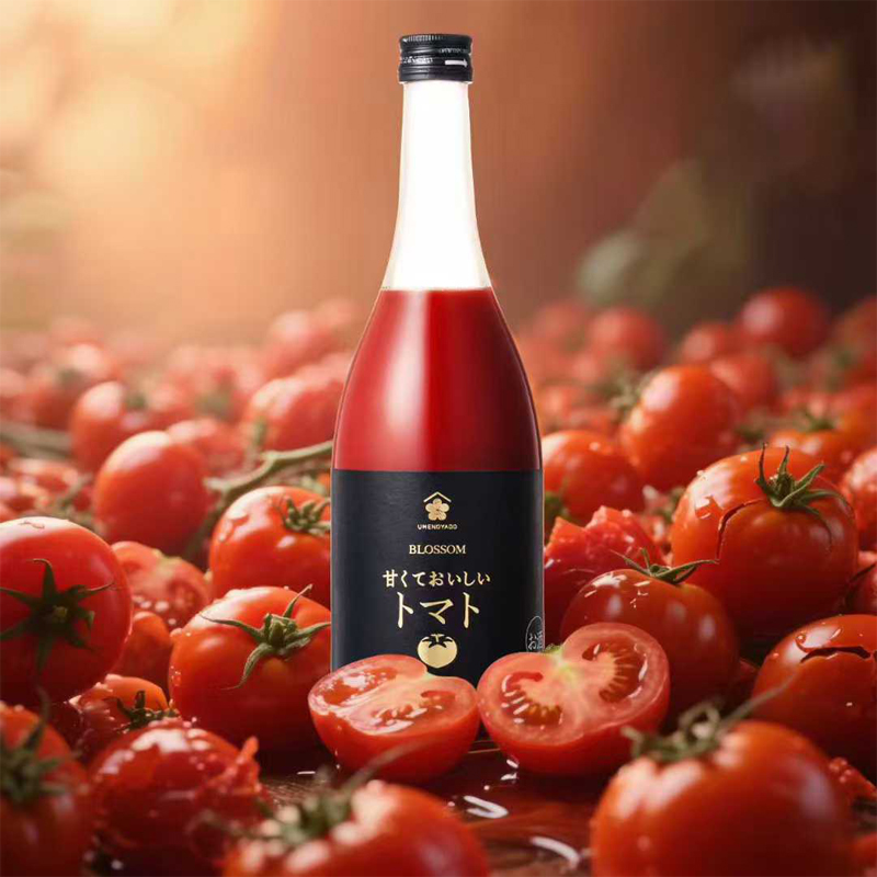 梅乃宿酒造以「浓缩果实本味」为执念,将新鲜番茄榨汁后以21.7%的高比例融入酒液,不添加任何香料、着色剂、粘稠剂,仅凭番茄的天然糖分与纯净酒基,酿出这抹颠覆认知的鲜红色微醺。