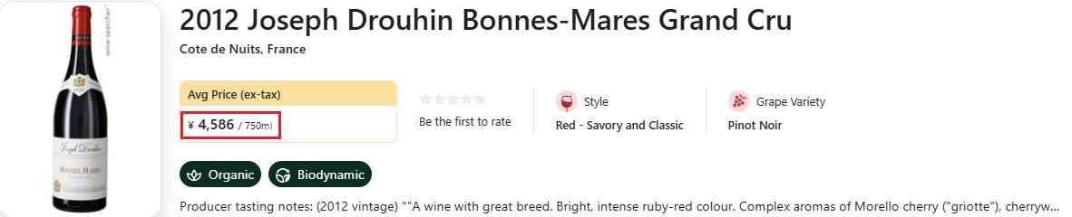 勃艮第大名家Joseph Drouhin,香波村唯二特级园之一的Bonnes-Mares,以低均近300的给力好价强势上线!