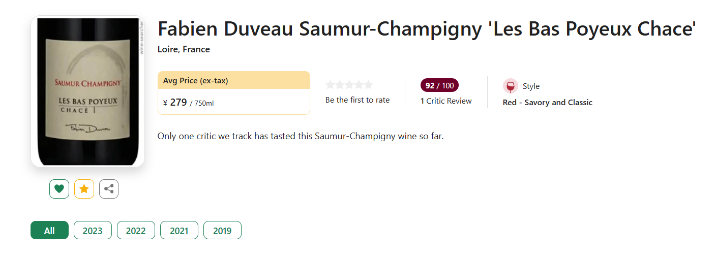 酒云团队试饮笔记:开瓶即被它富有表现力的香气吸引——带着一种近乎原始的、野生的能量铺展开来。成熟的红果香气奔放而热烈,伴随着青椒、雪松和石墨的风味,这是卢瓦尔品丽珠在纯净风土上的经典印记。入口后,充沛而明亮的酸度是骨架,赋予酒体极好的张力与活力,纯净且多汁。风格不刻意追求典型自然酒的强烈个性,反而在奔放中找到一种坚实的内核。是一款直接、有活力、颇具风土诚实表达的卢瓦尔红。