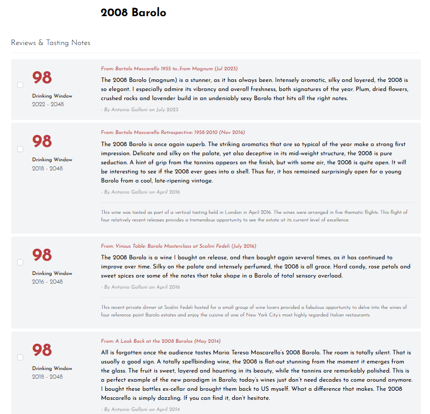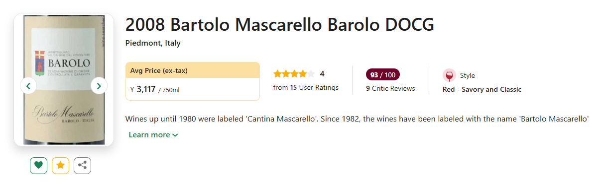 传统派Barolo代表Bartolo Mascarello登场!2008优年加持,斩获AG 98、Falstaff & WA 96、JS & CT 95等超高分,Vivino 4.4人气明星!
