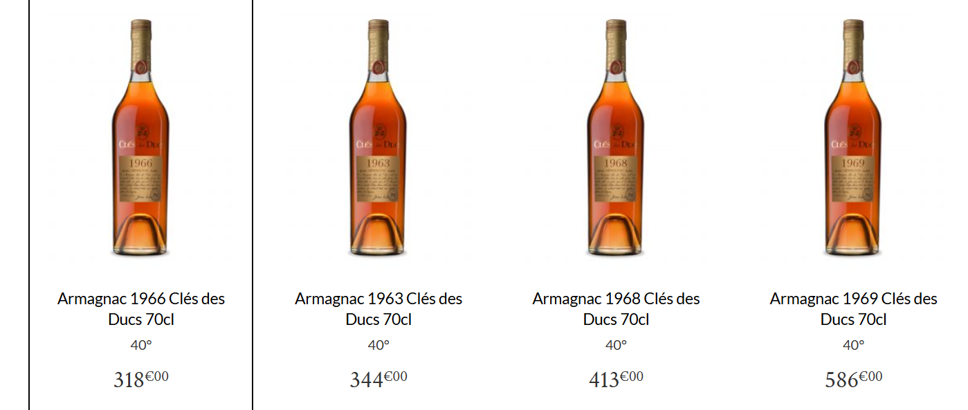 威士忌和干邑基本上都没有单一年份烈酒,只有雅文邑才会有单一年份,这也使得年份雅文邑成为了独一无二的存在,其地位也位于雅文邑白兰地等级的金字塔上层,价格自然也会高出很多。