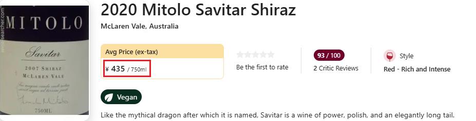 【国均5.9折!翩若惊鸿,宛如游龙!颠覆澳酒甜腻的刻板印象!】Mitolo Savitar Shiraz 2020 单支/双支/六支装 任选