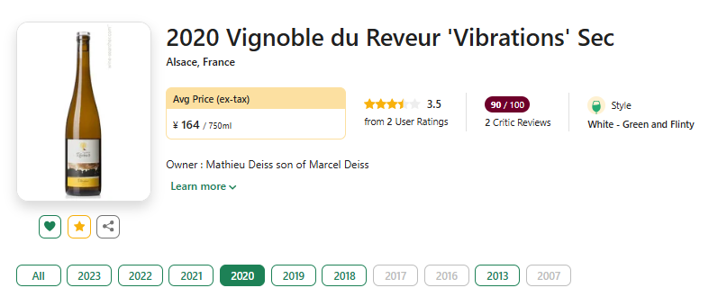 【清仓直降40!国均7.2折!热门老藤橙酒 | 阿尔萨斯名庄出品】 Vignoble du Reveur Vibrations 2020 酒云直采