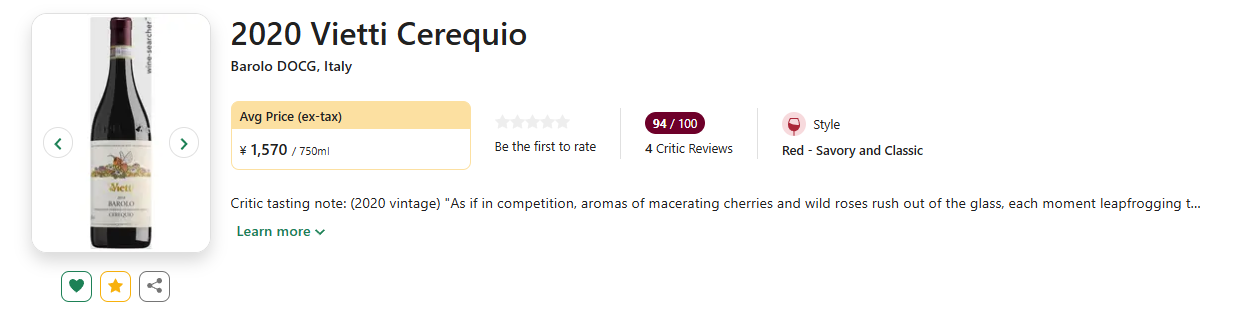 本次带来Cerequio特级园Barolo,2020产区优年加持下,斩获JS 97、Vinous 95+、WS 95、WA&WE 94名家高分!