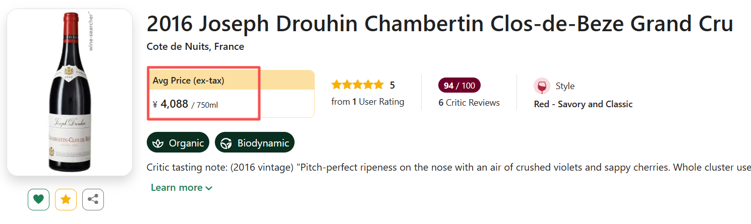 勃艮第大名家Joseph Drouhin出品,常被誉为香贝丹柔美一面的Clos-de-Beze特级园重磅登场!