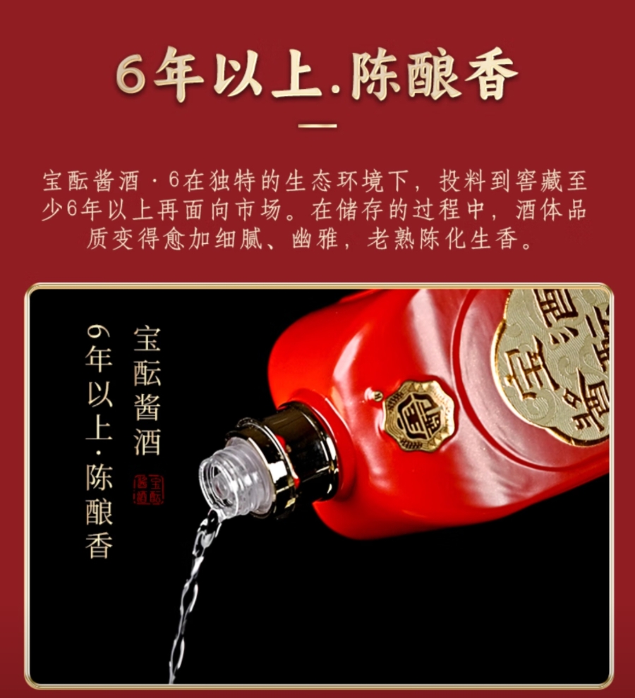 【滴血特卖!性价比拉满的核心产区大曲酱香口粮!】宝酝酱酒·6 酱香型白酒53度 500ml 双支/六支原箱