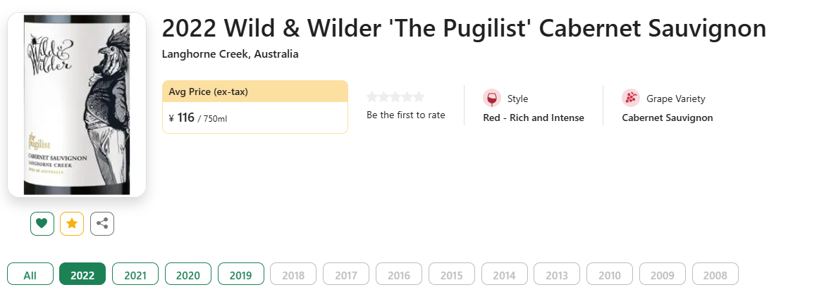 【国均6折!单支不到70元,面面俱到的赤霞珠!】Wild & Wilder 'The Pugilist' Cabernet Sauvignon 2022