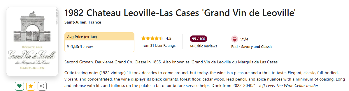 【低均近900!波尔多史上伟大1982!正牌雄狮!】Chateau Leoville-Las Cases Grand Vin de Leoville 1982