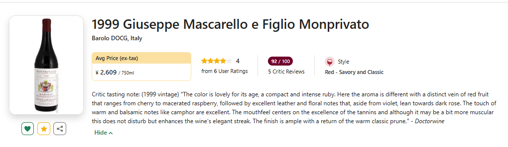 【巴罗洛传统名家,大年老年份超级名园!】Giuseppe Mascarello e Figlio Monprivato Barolo DOCG 1999