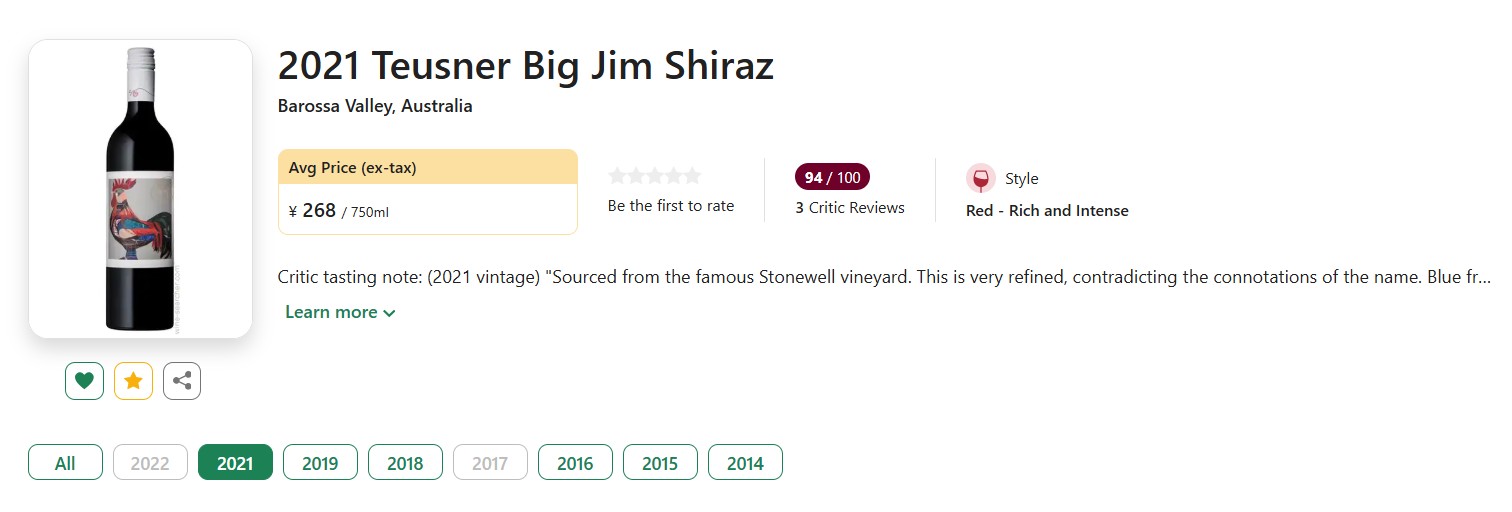 这款Big Jim单一园西拉是酒庄备受赞誉的高端款,七八年前我们自进口过2015年份,直接闪爆了酒云,