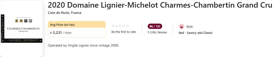 【国均7.7折!勃艮第闪耀明星,大年高分特级园!】Domaine Lignier-Michelot Charmes-Chambertin Grand Cru 2020 现货