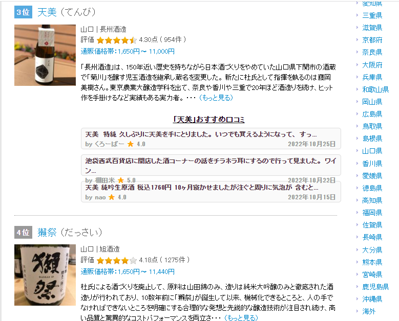 在强者如云的山口县排名第三,Saketime排名超越獭祭!