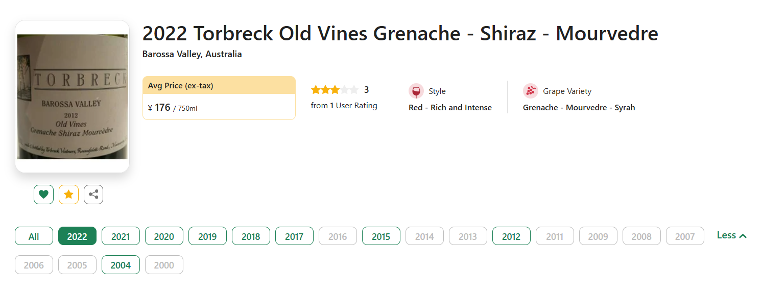 【国均6.5折!澳洲膜拜托布雷,超性价比老藤GSM!】Torbreck Old Vines Grenache - Shiraz - Mourvedre 2022 现货速发!