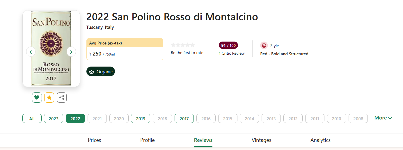 【国均5.9折清仓!产区生动先驱名庄,打着灯笼都难找的好价!】San Polino Rosso di Montalcino 2022 单支/六支 直降50元!