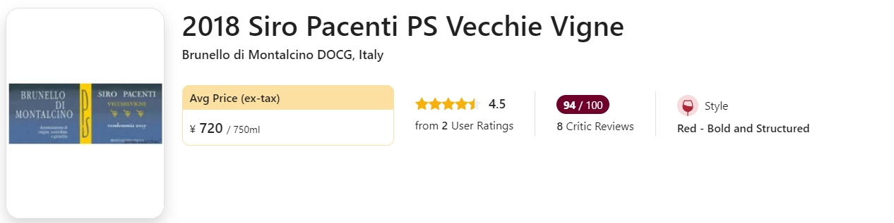 【心痛清仓价!JS百大榜单常客,BDM产区标志性大作!】Siro Pacenti Brunello di Montalcino Vecchie Vigne 2018