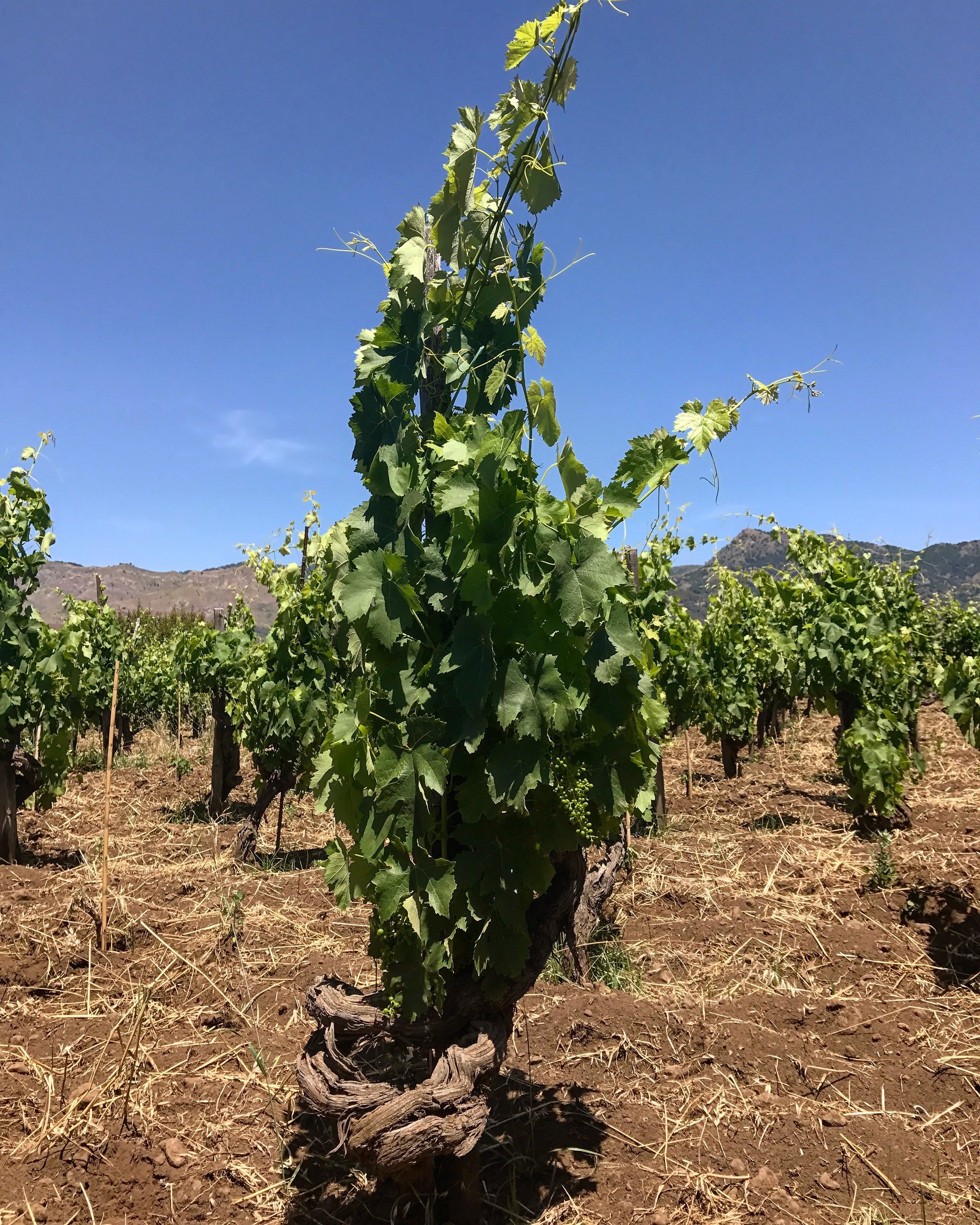 他的葡萄酒来自划分为9个精华地块的葡萄园,总面积仅4.7公顷,位于火山北坡较凉爽的方位,海拔从750到950米不等。他的葡萄园里面混和栽培了当地的传统葡萄品种,并且他会继续恢复老葡萄园中的原生品种,阿德华多是坚定的传统捍卫者。其栽培的红色葡萄品种包括:主要地位的Nerello Mascalese和Nerello Cappuccio、Alicante、Garnacha 等;⽩葡萄品种包括 Minella、Catarratto、Grecanico、Carricante 和 Inzolia。Eduardo也酿造两个单⼀的葡萄园葡萄酒,Pirrera和Quota N,后者来自⼀个名为Germana的葡萄园。
