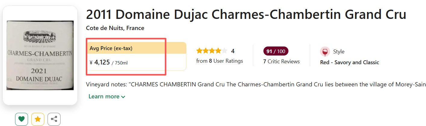 2011年份斩获TA 95高分好评,低均超百元好价上线,老饕们得抓紧啊!