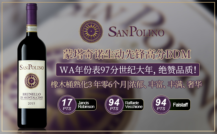 【国均6.9折!不费电的超级大年!蒙塔奇诺生动先驱当家BDM!】San Polino Brunello di Montalcino DOCG 2015