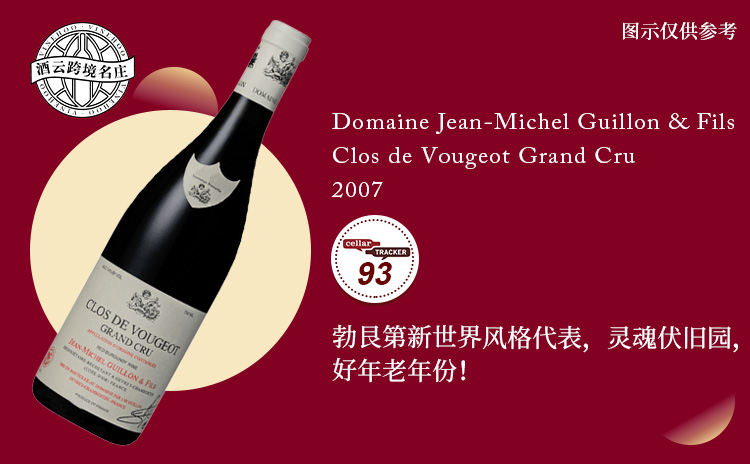 【全年份国均6.3折!阿歇特指南教科书级名家,好年伏旧园!】Domaine Jean-Michel Guillon & Fils Clos de Vougeot Grand Cru 2007 现货