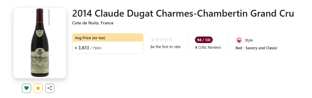 【低均!酒神继承人,优年Charmes香贝丹特级园!】Claude Dugat Charmes-Chambertin Grand Cru 2014