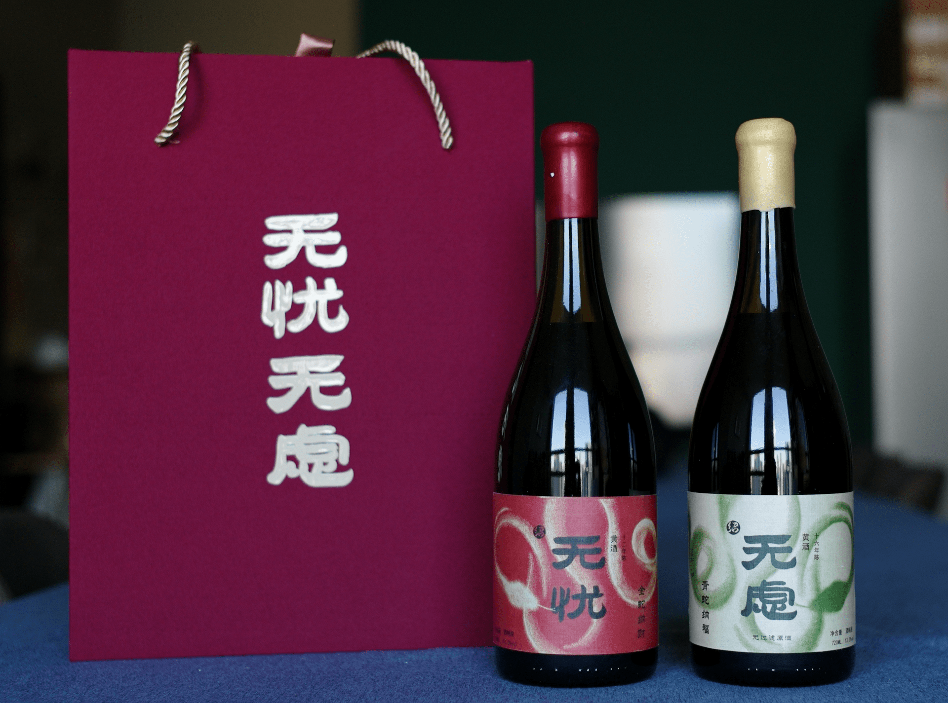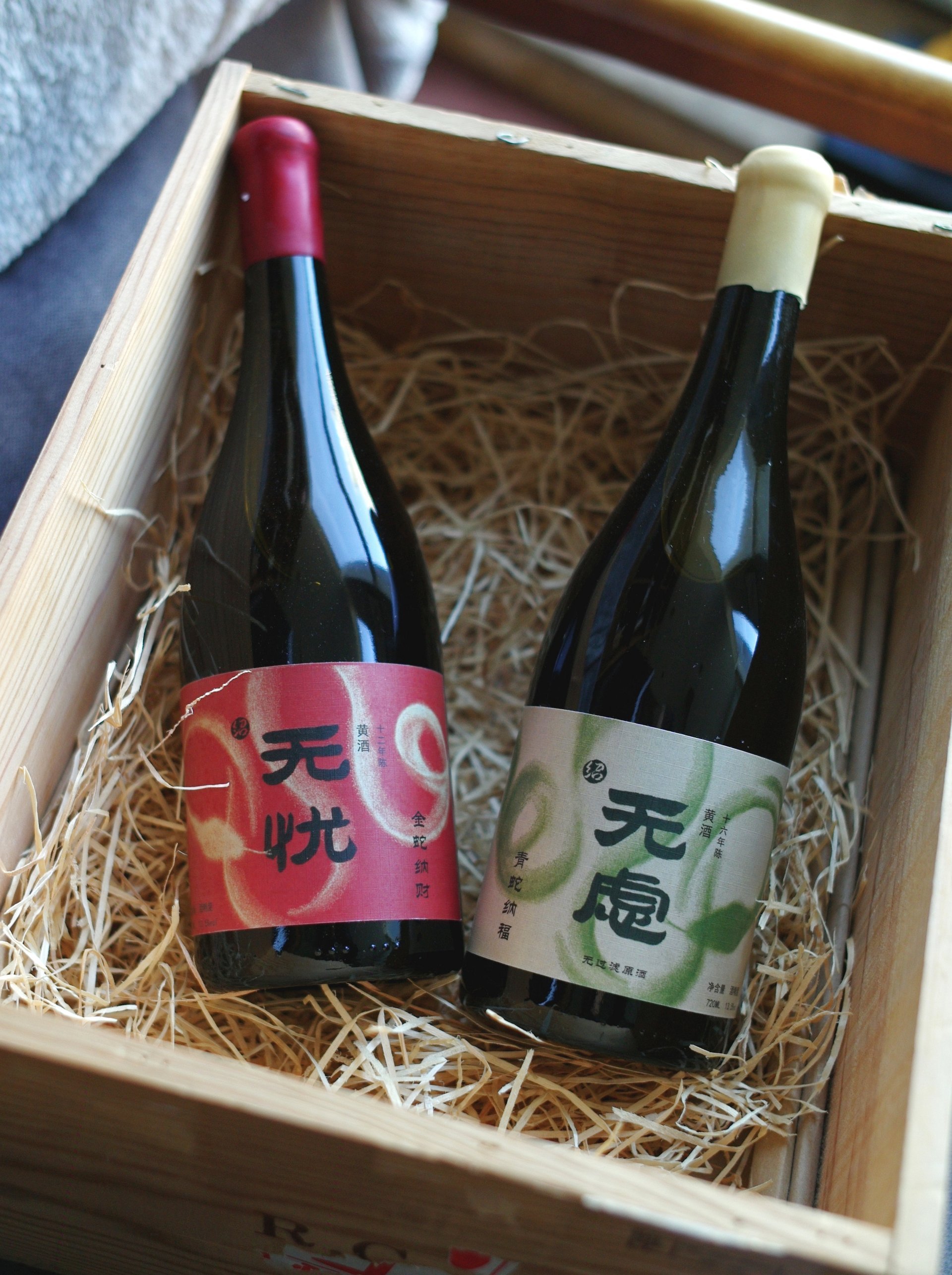 不同的是纳财金蛇和纳福青蛇缠绕了瓶身,礼盒改成了更有质感的织布包装。更加值得一提的是这支16年陈的 “无虑” ,为了保留更多鲜爽而舍弃了过滤这道程序,真正做到了“无滤”,凑成无忧无虑,也是动了巧思。