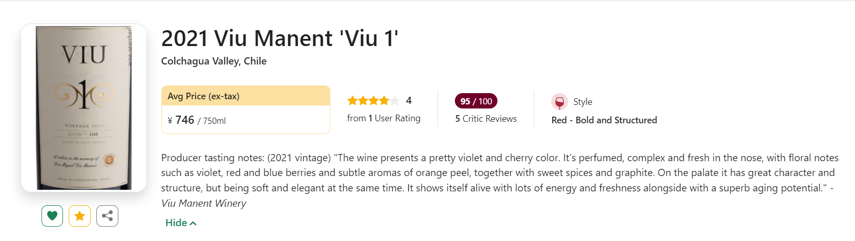 【得了280个金奖,喝了才知道马尔贝克酒王啥样子】Viu Manent 'Viu 1' 2021 单支/六支原木箱
