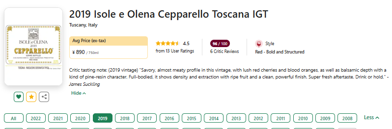*意大利酒评家Ian D’Agata在The ECCO Guide to the Best Wines of Italy的书中推荐了100款「价格在$100 美元下的BEST意大利红酒」,其中前25款红酒中,以Sangiovese为主的有9款,而Isole e Olena Cepparello就碾压众多BDM名家,跻身前列。