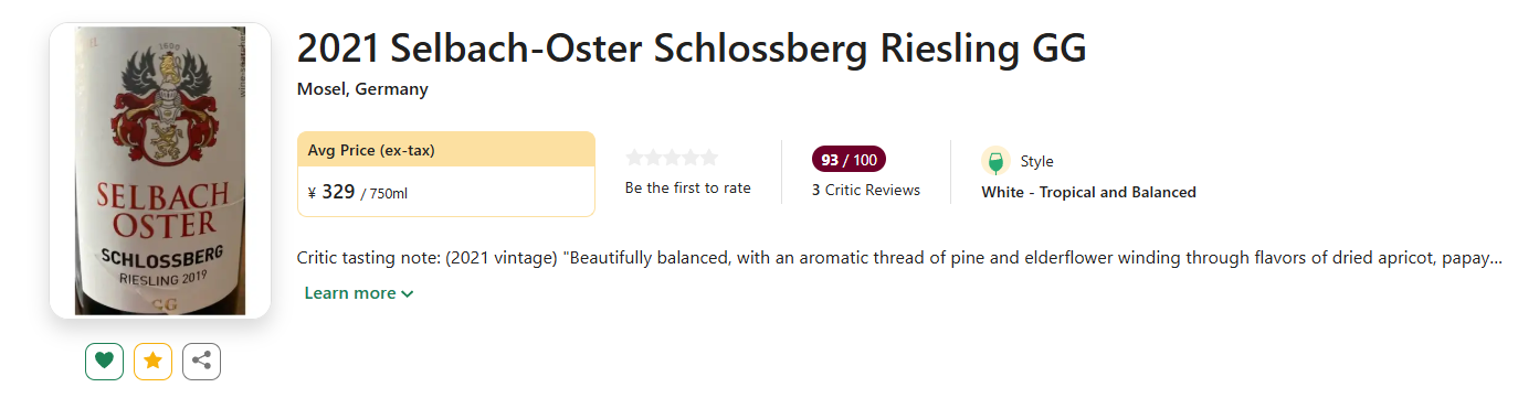 本次带来2021年份的Schlossberg GG,JS 94、WA 93-94、WE & WS 93、MFW 90好评推荐,WA盛赞其“展现出空灵澄澈的天籁质感”!