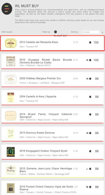 但没关系,来看看英国Wine Lister网站上列出世纪必买葡萄酒,酒庄以绝对高分两度上榜,价格几乎包圆了至低的前几名,无与伦比的性价比,只此一家!良心的定价背后,是能堪比波尔多一级庄的酒款品质与稳定水准!